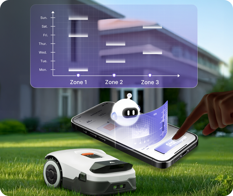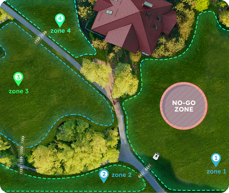 Täpne RTK-GNSS tagab kenasti niidetud servad ja nurgad ning võimaldab robotniidukil navigeerida ka puude all. Vihmaandur tuvastab märjad tingimused ning kaamerad hoolitsevad lemmikloomade ohutuse eest. Kas murukasv on krundil ebaühtlane? Pole probleemi. Lihtsalt määra rakenduses erinevad tsoonid erineva niidukõrgusega ja mure on lahendatud. Samuti saad välistada alad, kus soovid kevadel murus kasvavaid lilli nautida, ning seadistada need alad pärast õitsemisperioodi lõppu taas niitmiseks.